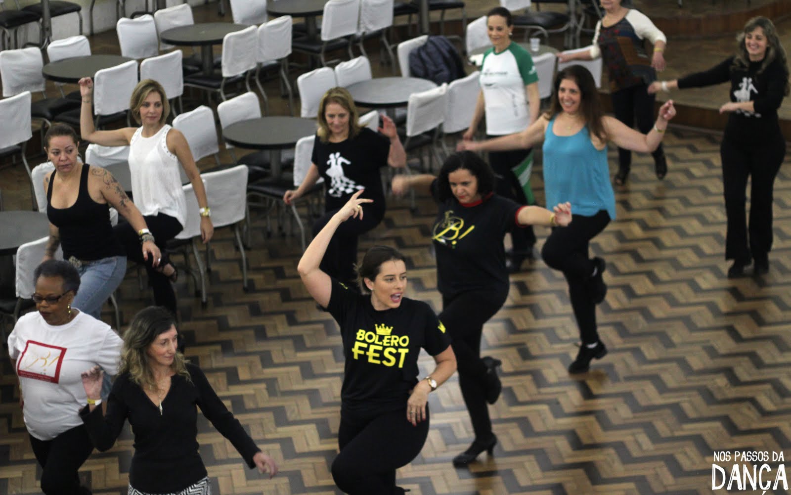O professor Júlio Franco, trabalhou também com o trocadilho, passo clássico do bolero. Mas passou questões técnicas, como o movimento do quadril, que ajudam a deixar o passo com mais desenvoltura. Os professores Elis Pires e Anísio Basílio, da escola Espaço Arte Cultural Pires Basílio, trabalharam o leque e suas variações, com movimentos de efeitos diferentes no leque tradicional.
